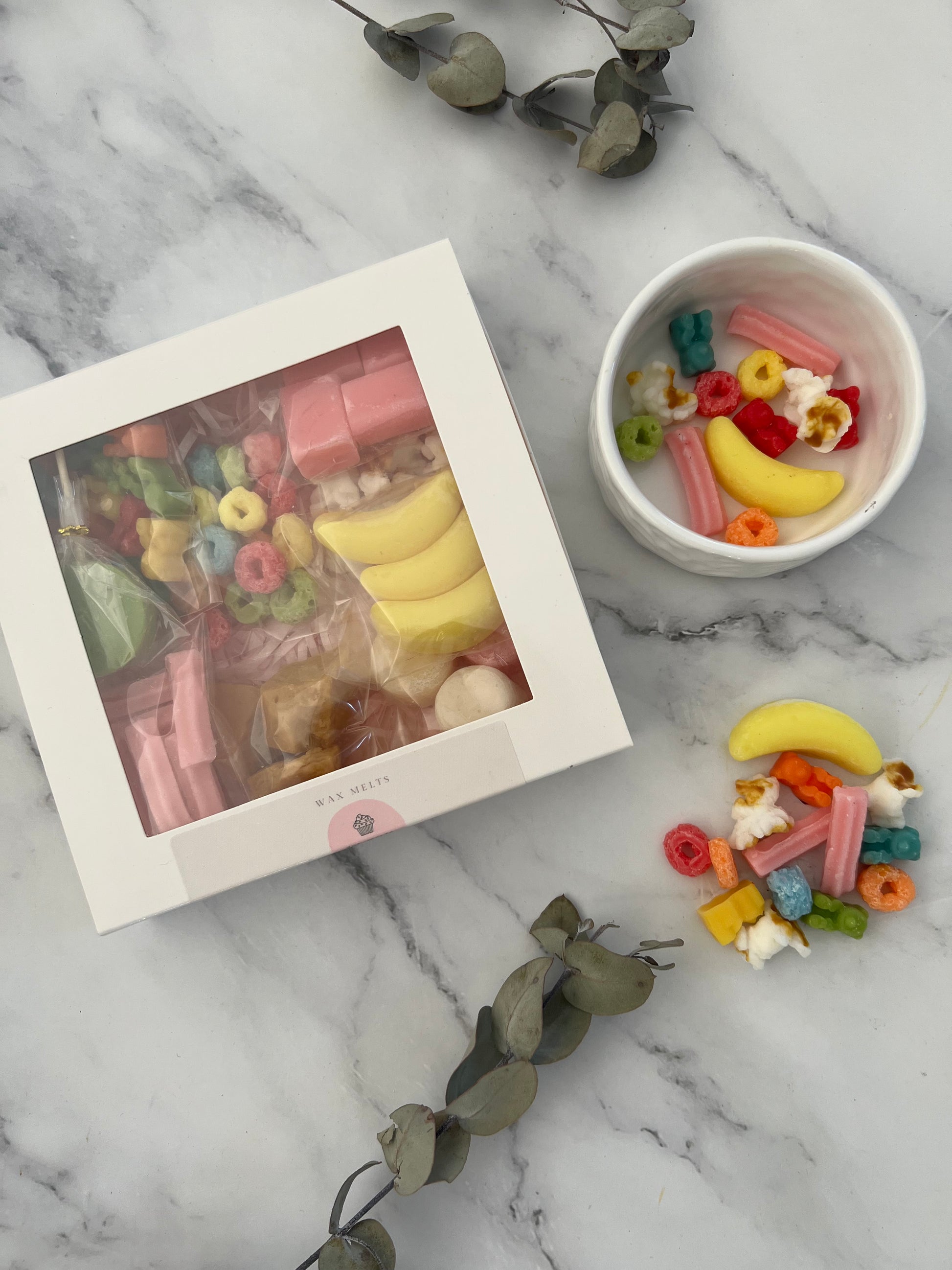 The perfect wax melts for this Halloween! A box of sweet trick or treat candy which takes you on an olfactory adventure! Experience zesty citrus notes, mixed with juicy berry top notes and a sweet undertone of vanilla and tonka bean. You'll receive a mix of Musk Sticks, Banana Lollies, Froot Loops, Gummy Bears, Hubba Bubba and more!
