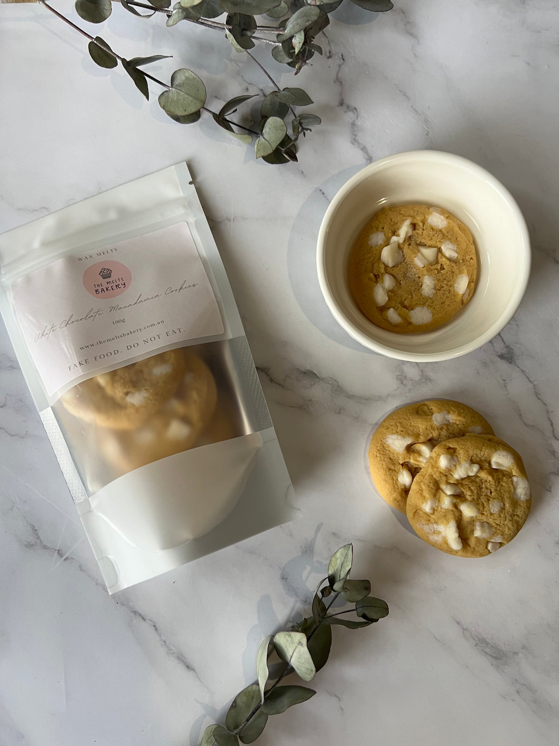 * 4x lifesize White Chocolate Macadamia Cookie wax melts