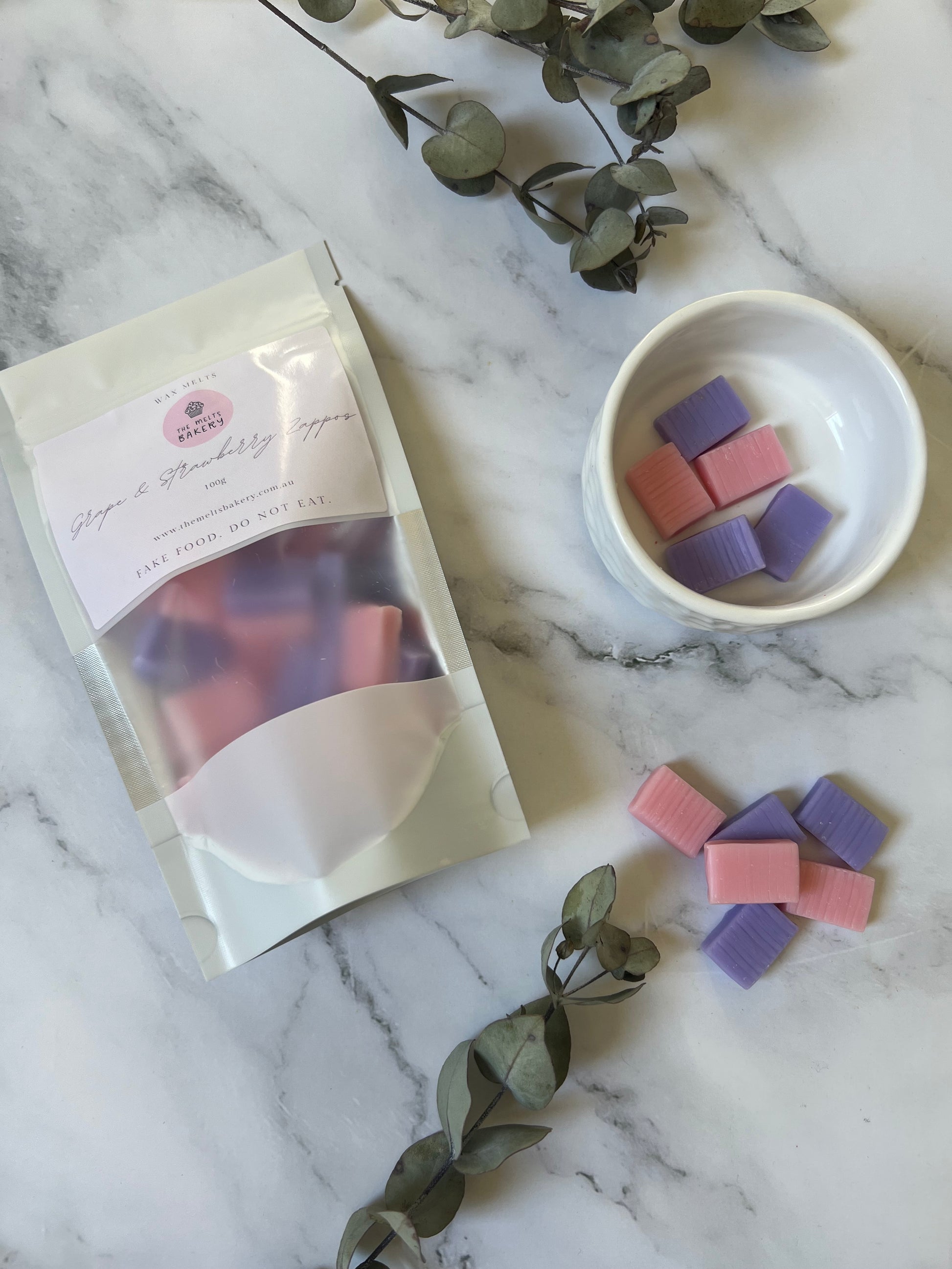 * 100g of life size Grape and Strawberry Zappo wax melts